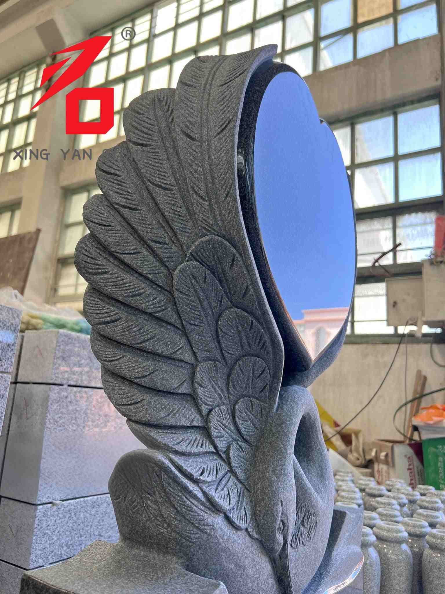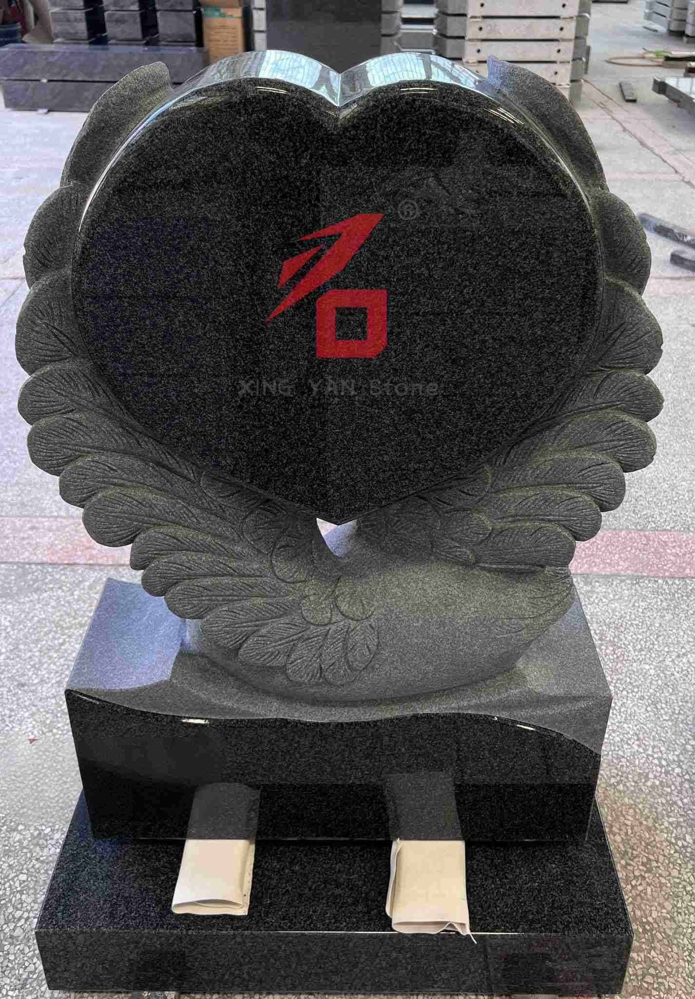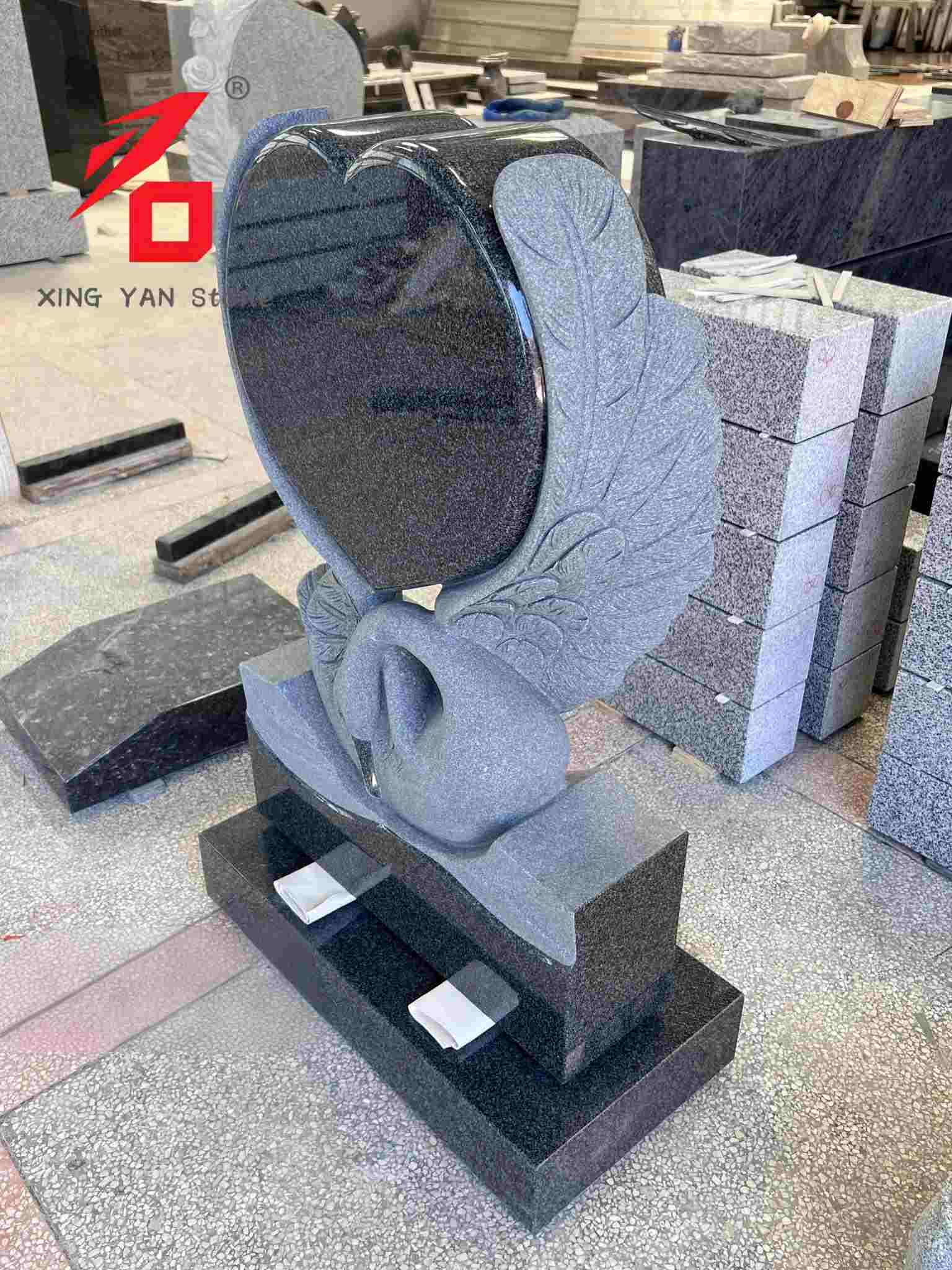Дизајн: Главно тело је углачано црно срце, са реалистичним лабудовим крилима уклесаним иза њега. Облик лабуда и срце симболизују вечну љубав и сећање на покојника. Целокупни дизајн је веома уметнички, што га разликује од монотоног стила традиционалних надгробних споменика.