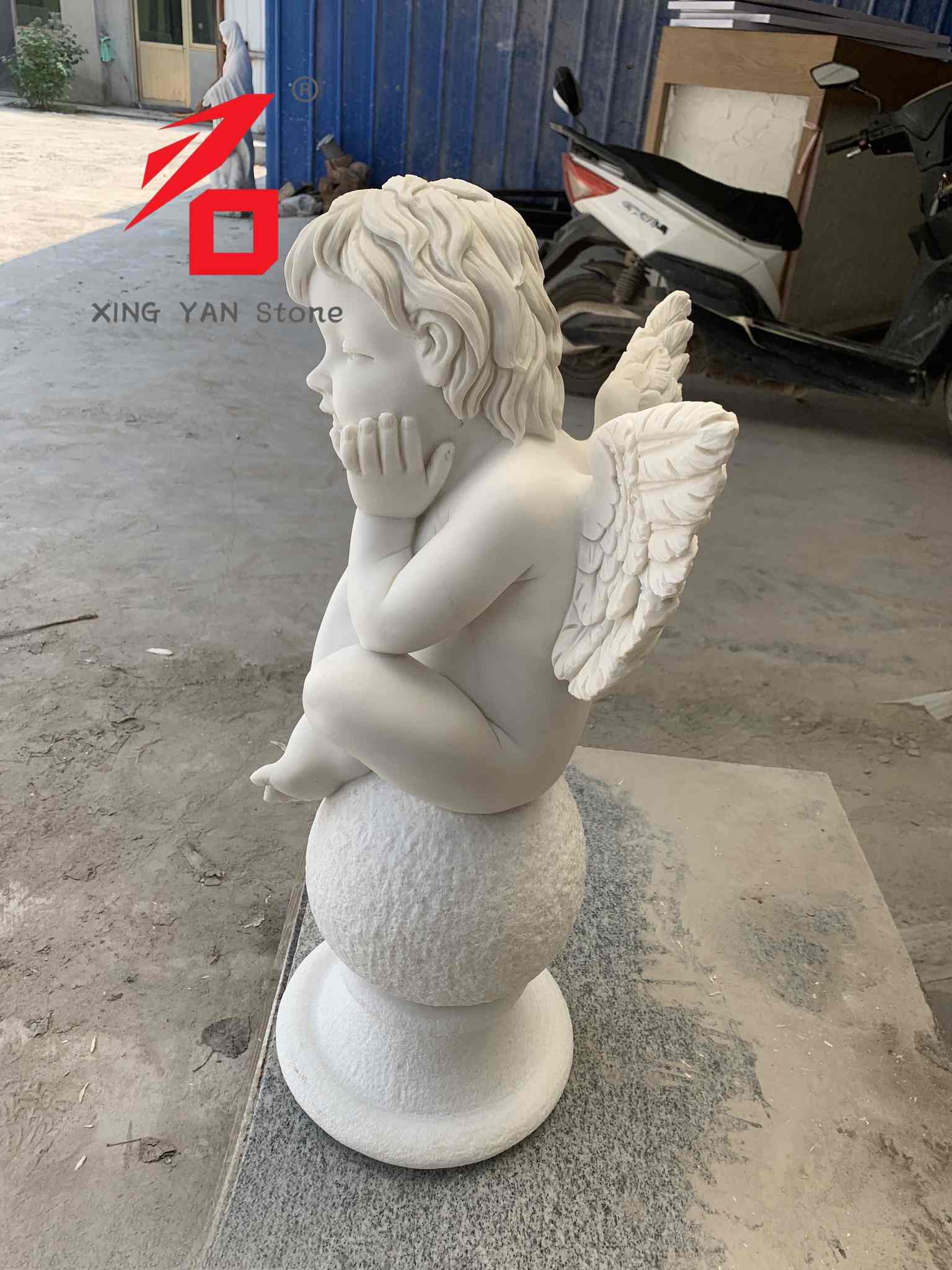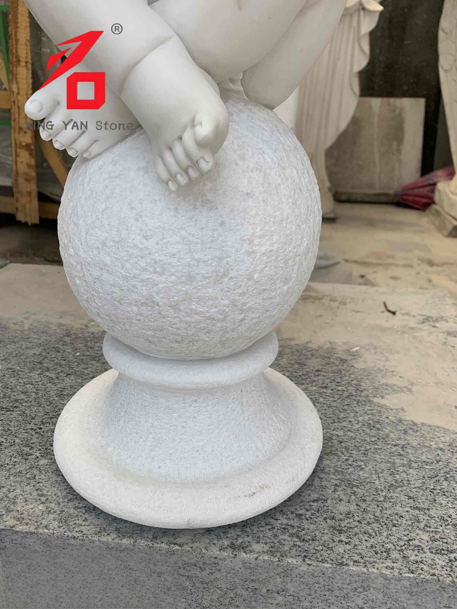 Материјал: Одабрани висококвалитетни бели мермер из провинције Фујиан. Камен је чист, деликатан, бео и топао на додир, умерене тврдоће и лаког резбарења, што обезбеђује текстуру и трајност скулптуре.