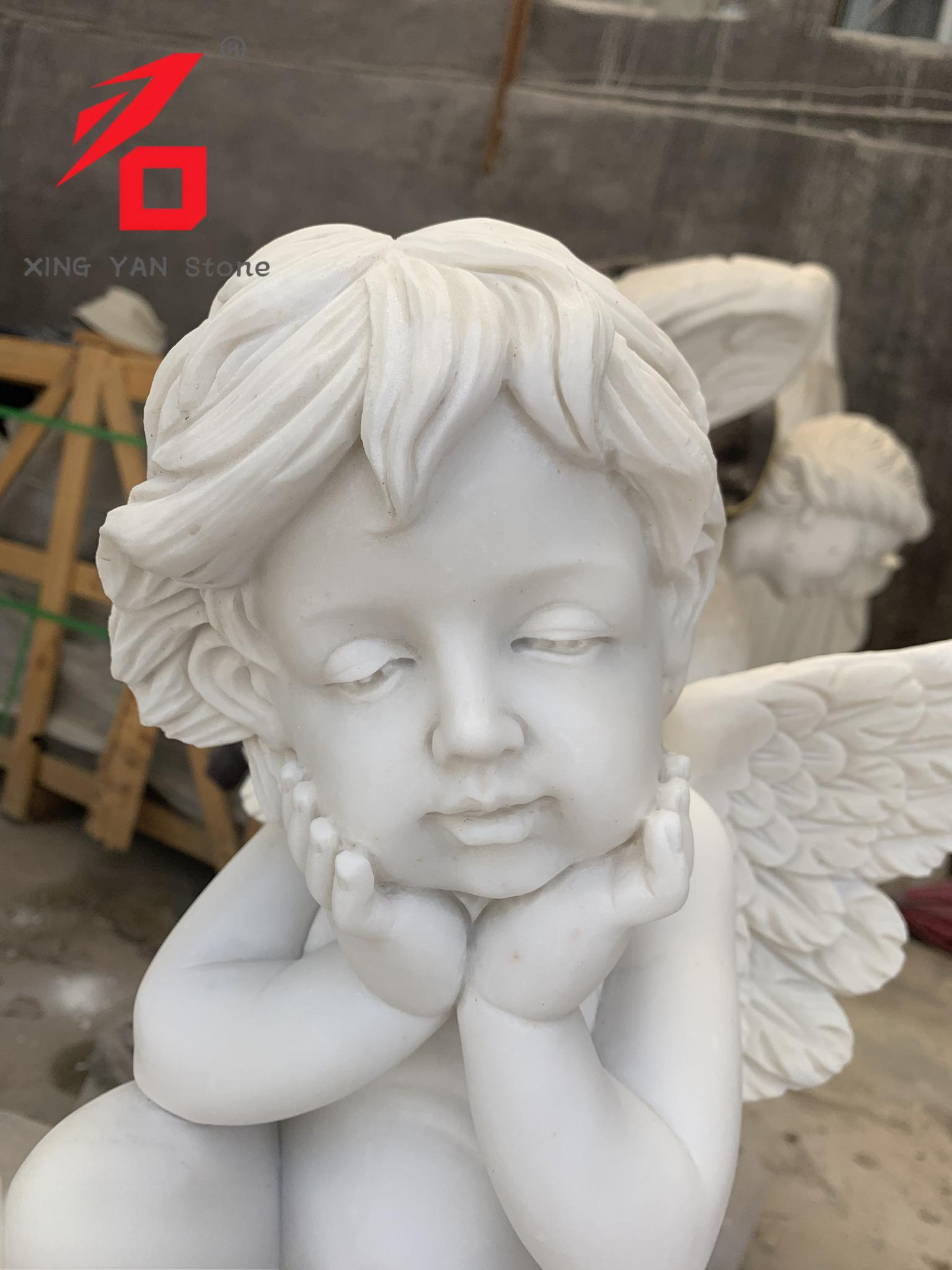 Дизајнерски стил: Усвојен европски класични стил, херувим је приказан у контемплативној пози, са рукама које подржавају браду, са спокојним изразом лица. Његова крила су јасно дефинисана, а текстура перја је јасна, стварајући свеукупни романтични осећај који одговара декоративним потребама европских вртова, верских објеката или комеморативних поставки.